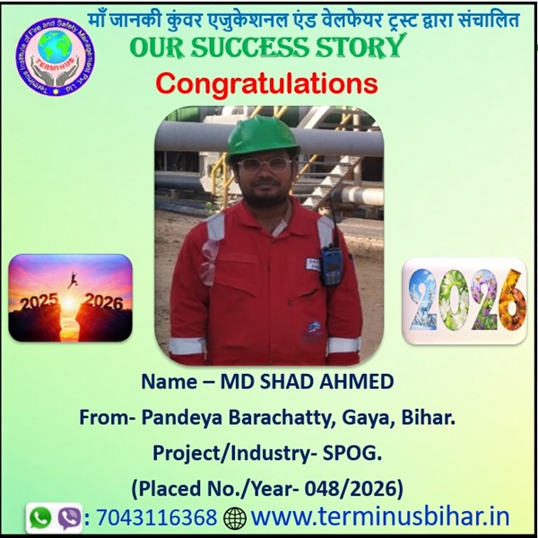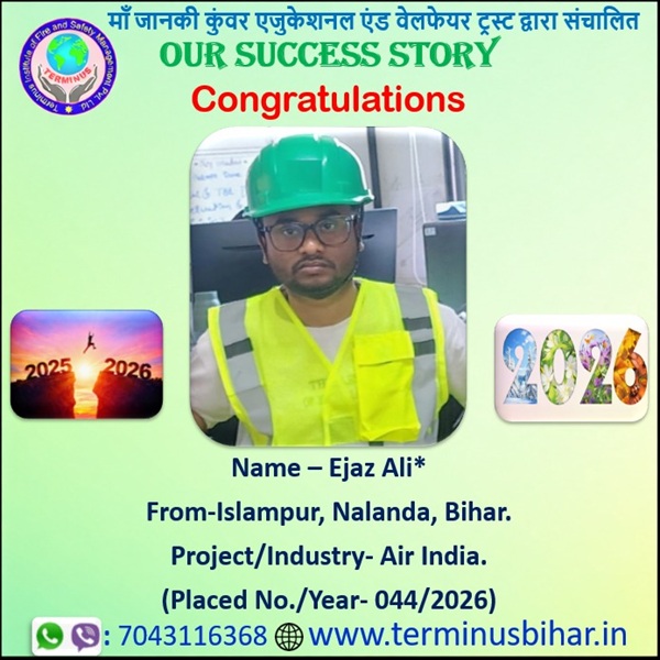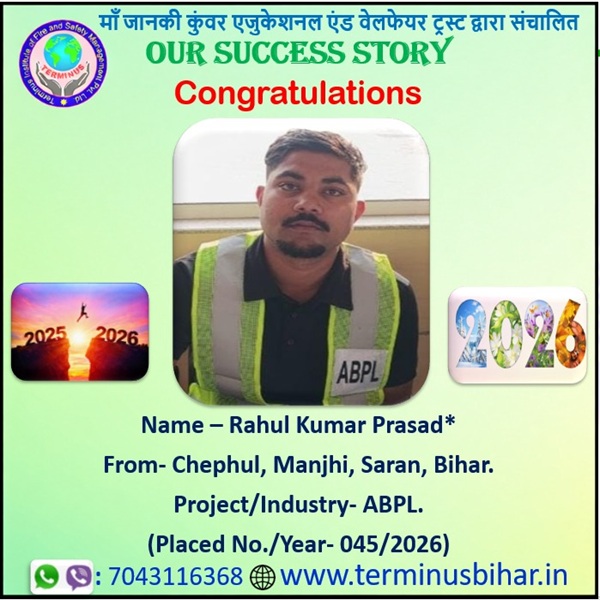 TERMINUS INSTITUTE OF FIRE & SAFETY MANAGEMENT PVT.LTD An ISO 9001:2015 certified institute, Approved by Ministry Of Corporate Affairs GOVT.OF.INDIA and Technical Collaboration with BHARAT SEVAK SAMAJ Chennai ( A national Development Agency Promoted By GOVT.OF.INDIA. ) The TERMINUS is the most emerging institute of fire and safety management in Bihar...